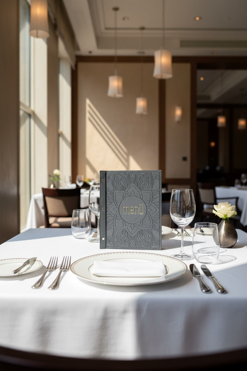 Siyah Deri Menü Kabı - A4 - 8 Sayfa – İçten Geçmeli